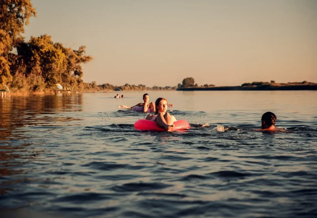 • Swimming is perfect on warm days, with safety measures in place. Floaties and tubes make it more fun for all ages.