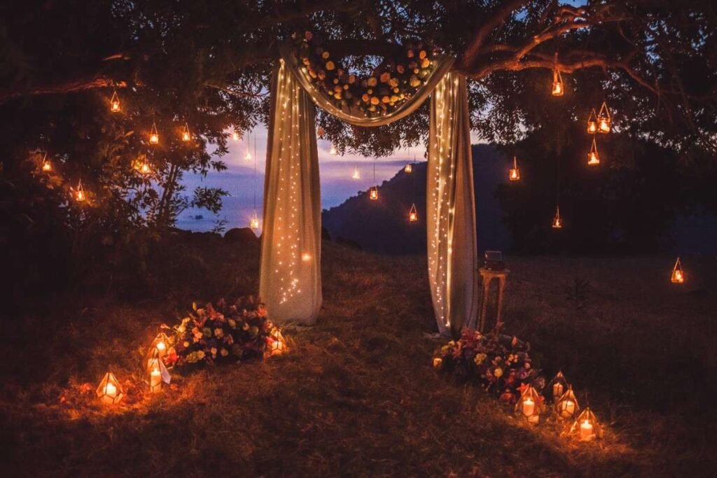 - Floral arches and fairy lights